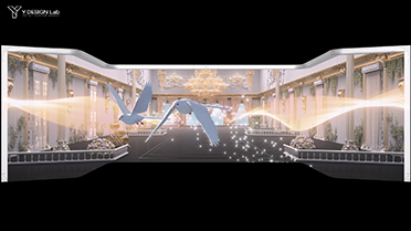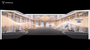 안산 엠블던호텔의 루시아홀에 설치된 대형 LED 전광판(가로 19.2m, 세로 3.68m)에 송출되고 있는 콘텐츠로, 본 예식 시작을 알림과 동시에 하객들의 주의와 시선을 자연스럽게 무대 중앙으로 집중시키는 효과를 연출하기 위해 제작된 3D 다면 아나몰픽 입체 영상.