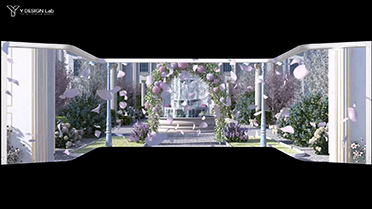 화려한 결혼식을 더욱 돋보이게끔 아름다운 정원에서부터 화려하고 고풍스러운 웨딩홀까지 연속적으로 이어지는 초대의 공간을 표현.